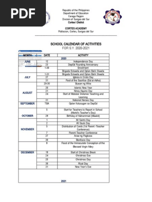 School Calendar Of Activities Pdf Public Holiday Festival